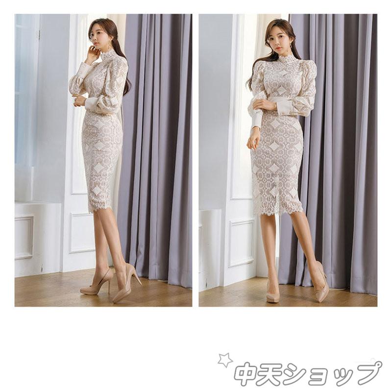 韓国 ワンピース ストレッチ タイト 長袖 花柄 レース 高品質 高級 ブランド インポート 30代 代 大人 セレブ ミディ 海外 パーティー クラブ キャバ ラウンジ Luxury キャバドレス 銀座 膝丈 ワンピ 韓国ドレス S Dress 七分袖 L キャバクラ